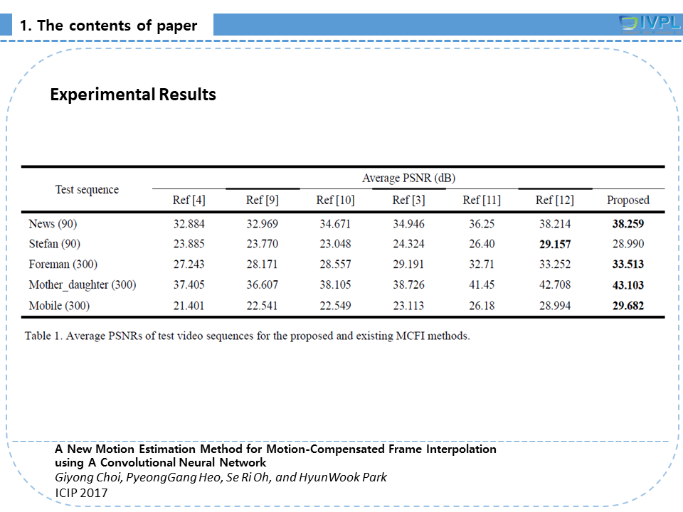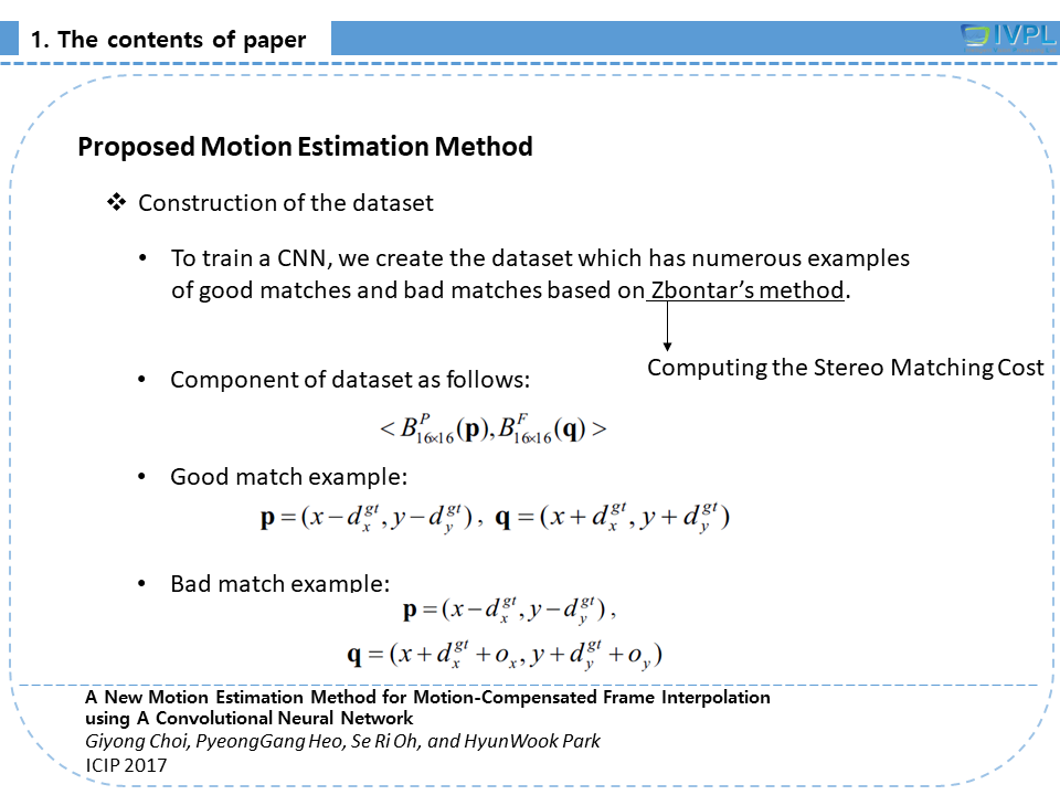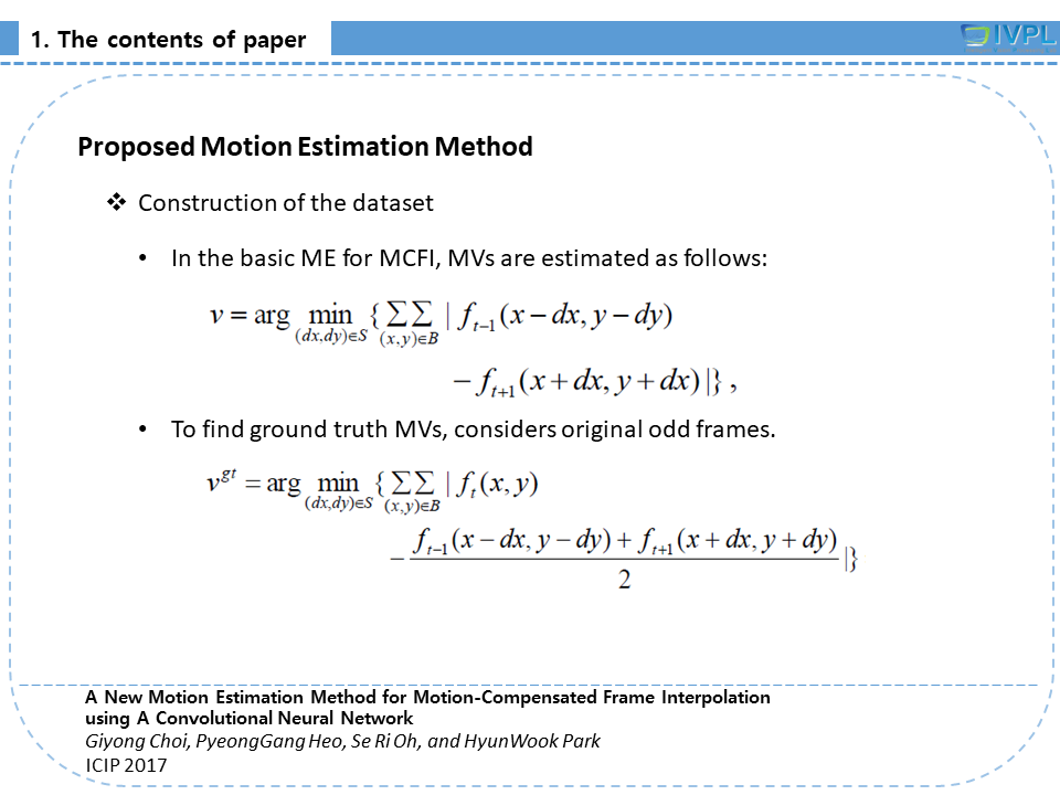 Choi, Giyong, et al. "A new motion estimation method for motion-compensated frame interpolation using a convolutional neural network." 2017 IEEE International Conference on Image Processing (ICIP). IEEE, 2017.