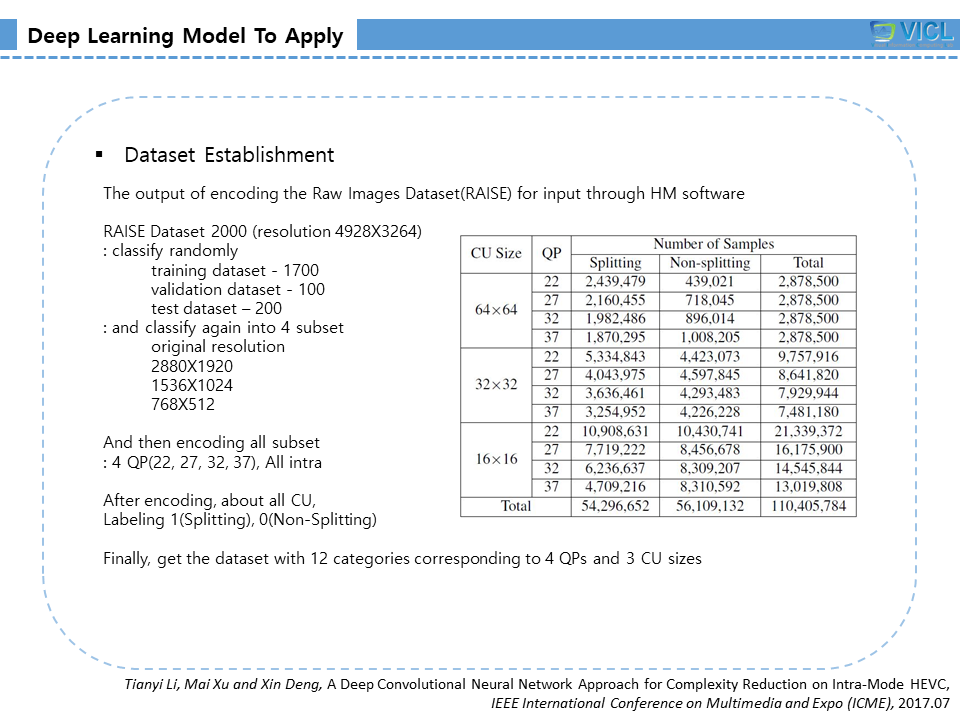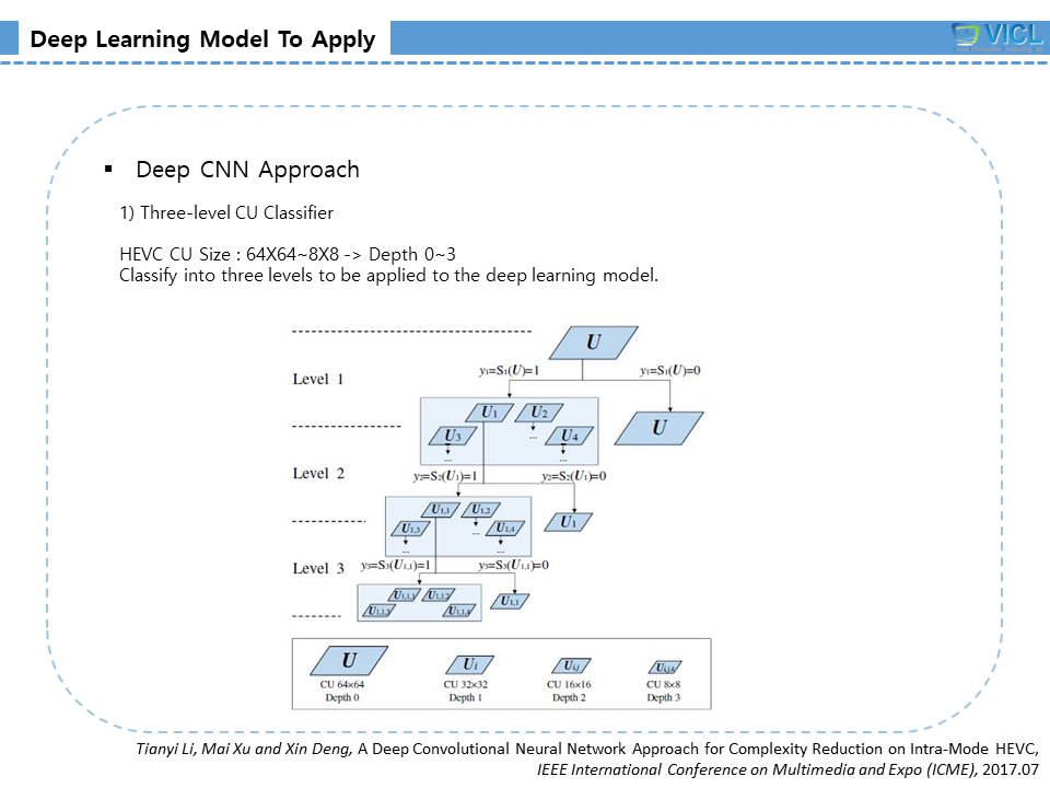 Li, Tianyi, Mai Xu, and Xin Deng. "A deep convolutional neural network approach for complexity reduction on intra-mode HEVC." 2017 IEEE International Conference on Multimedia and Expo (ICME). IEEE, 2017.
