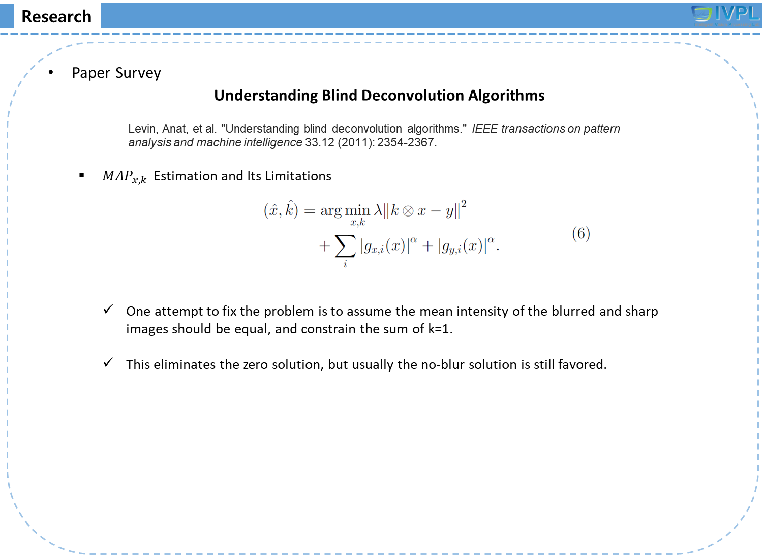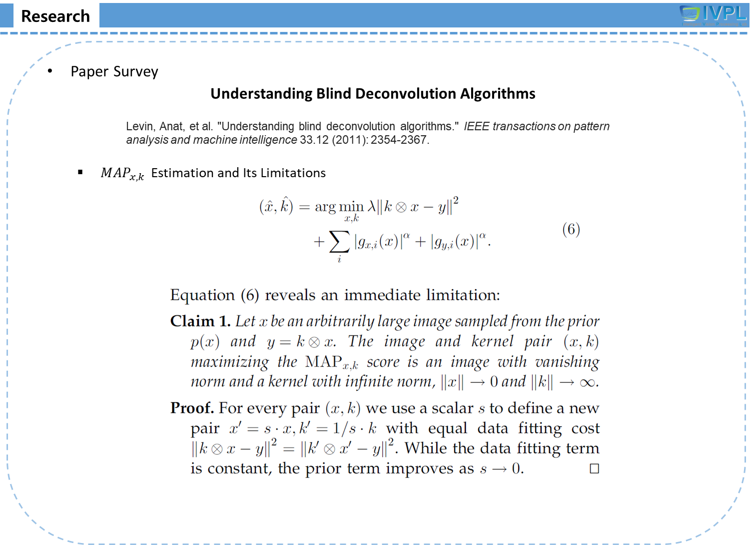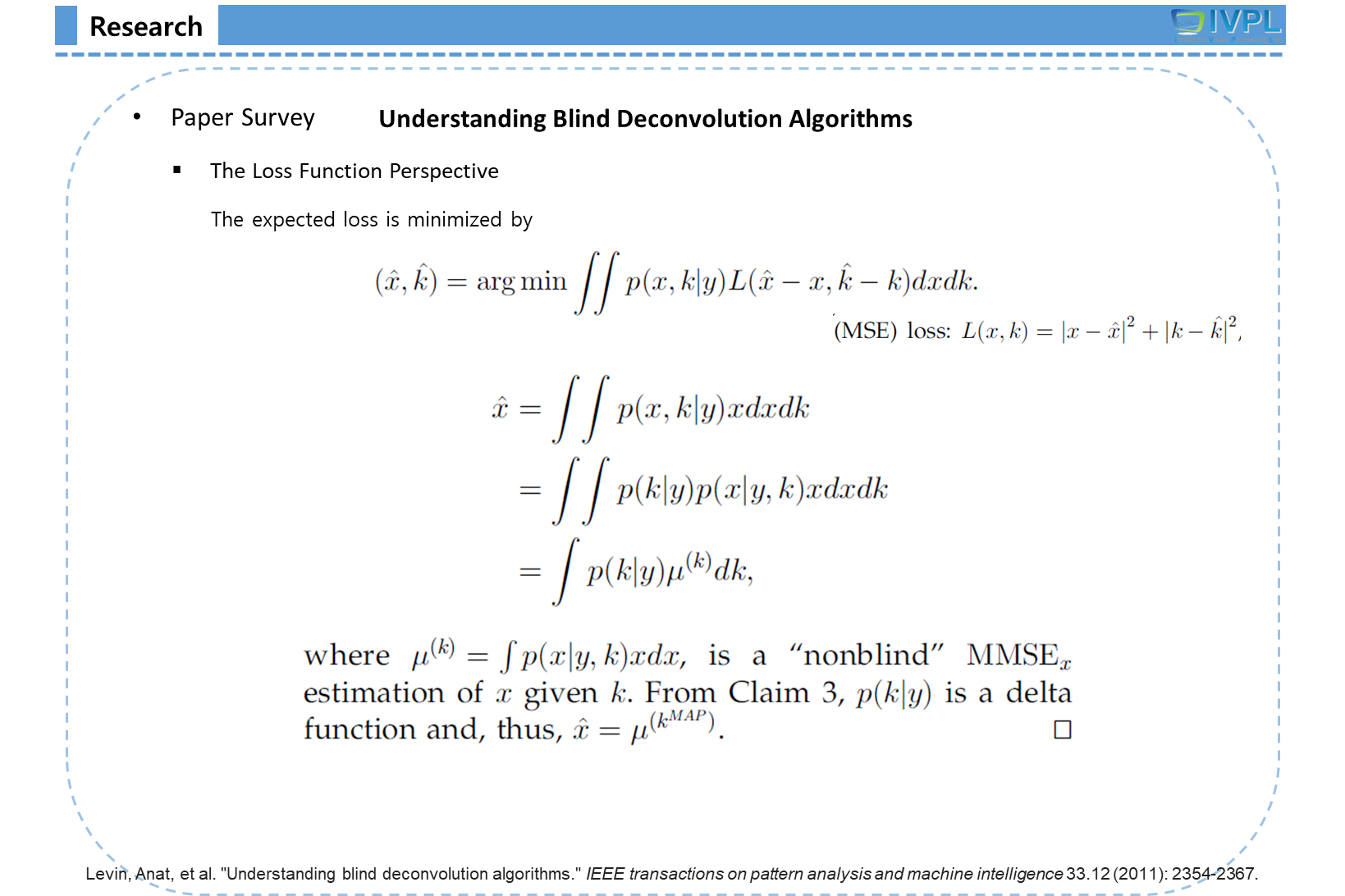 Levin, Anat, et al. "Understanding blind deconvolution algorithms." IEEE transactions on pattern analysis and machine intelligence 33.12 (2011): 2354-2367.