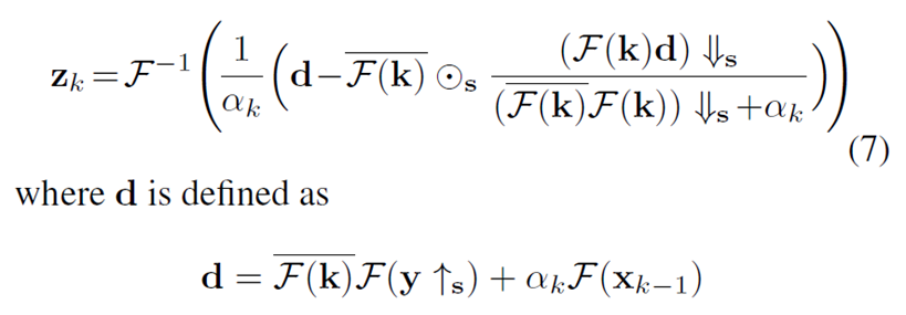 결론적으로, z를 계산하는 수식은 data term을 담고 있으며 계산된 z를 x를 계산하는 식에 넣어 최종 HR x를 얻는 방식을 가진다. 참고로 여기서의 z와 x에 붙어있는 k는 iteration을 의미한다.
